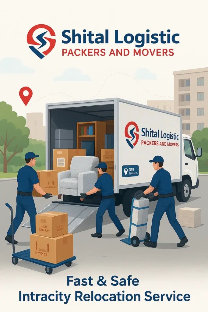 Looking for the best intracity packers and movers who can handle your move with care, speed, and reliability? At Shital Logistic Packers and Movers, we make your local relocation simple and stress-free. With our ISO 9001:2015 certification, GPS-enabled vehicles, and 24×7 customer support, you can count on us for a safe and timely moving experience – every time.