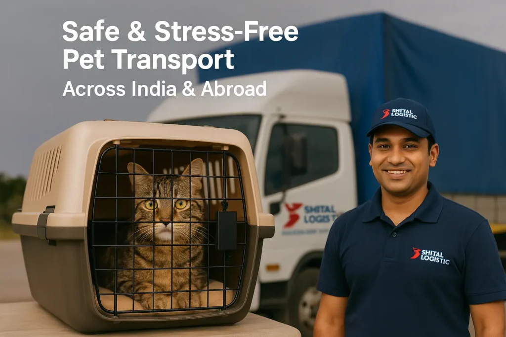 At Shital Logistic Packers and Movers, we make pet transport simple, safe, and worry-free. Whether it’s intracity pet shifting, intercity relocation, or international pet transport, our professional team ensures your furry companions travel with comfort, care, and complete safety.